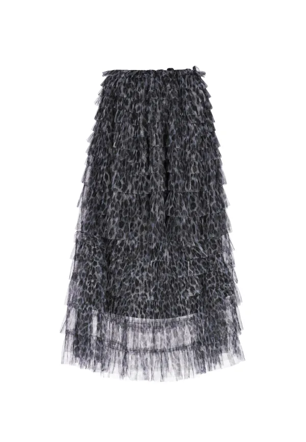 Design: A-lijn; Type sluiting: Slip; Materiaal: Tule; Motief: Dierenprint; Rokvorm: Volantrok; Details: Ruches, Volant; Extra's: Licht transparant, All-over patroon, Voelt zacht aan; Lengte: 7/8 lengte; Pasvorm: Normale pasvorm