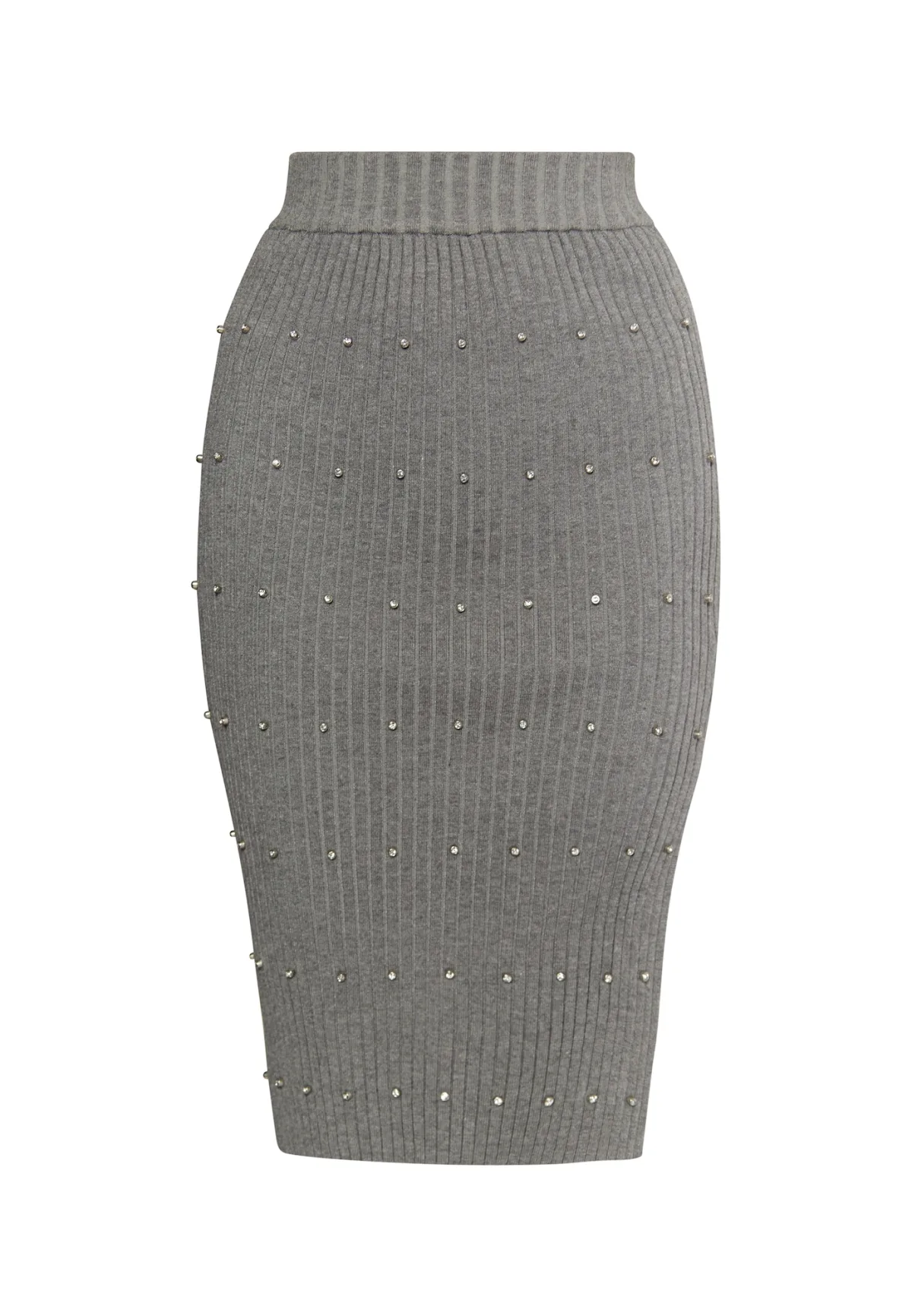 Faina Gebreide rok met strass steentjes Dames grijs melange