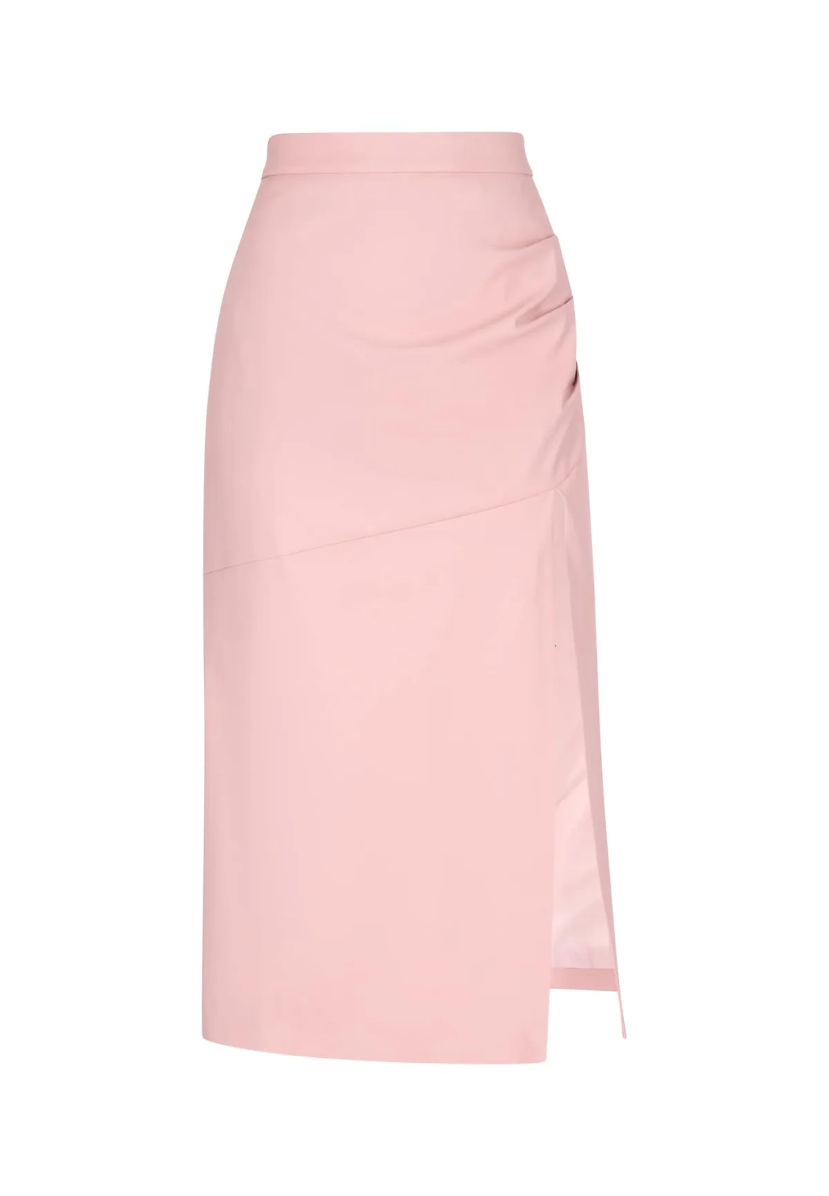 Design: Zijdelingse inkepingen; Type sluiting: Ritssluiting; Materiaal: Imitatieleder; Motief: Effen; Rokvorm: A-lijn rok; Details: Cut-outs, Gedrapeerd; Extra’s: Op staal naden; Lengte: 3/4 lengte; Pasvorm: Aansluitende pasvorm