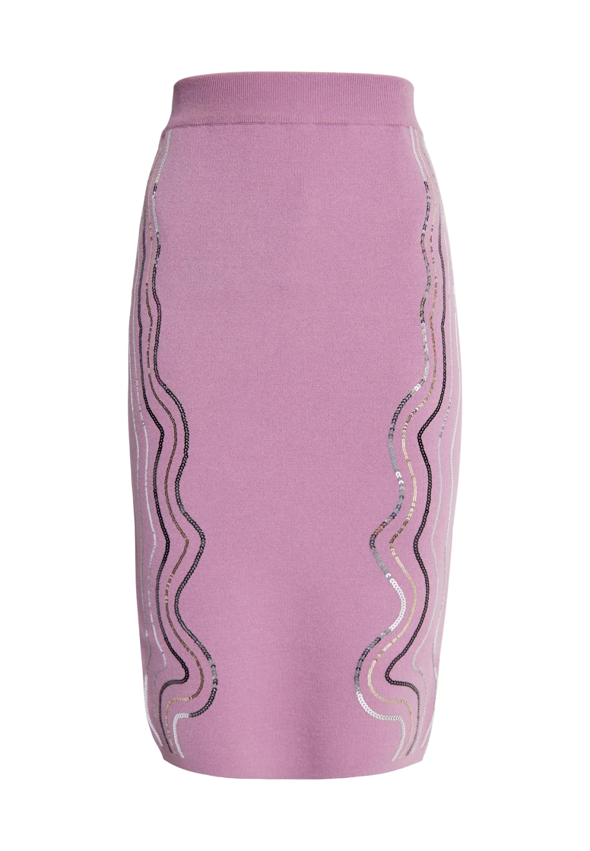 Motief: Effen; Rokvorm: Kokerrok; Details: Pailletten; Lengte: Knielengte; Pasvorm: Aansluitende pasvorm