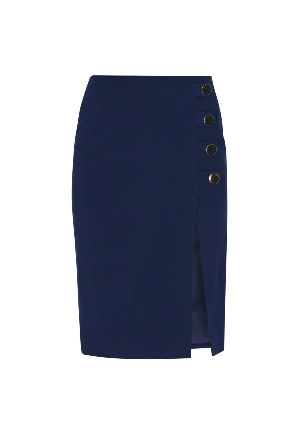 Design: Gevoerde zoom/rand, Split; Type sluiting: Ritssluiting; Motief: Effen; Rokvorm: Kokerrok; Extra's: Op staal naden; Lengte: Knielengte; Pasvorm: Normale pasvorm