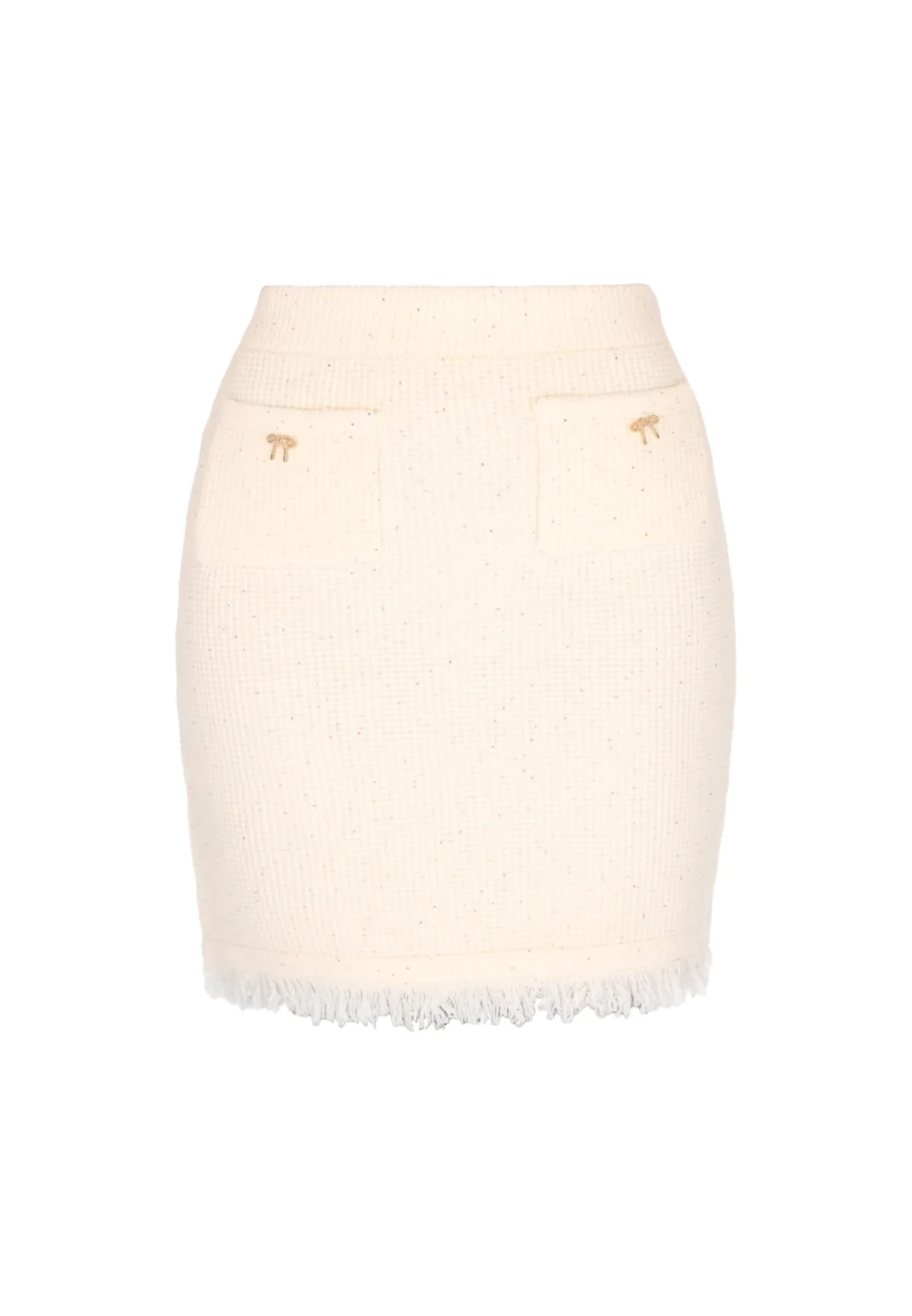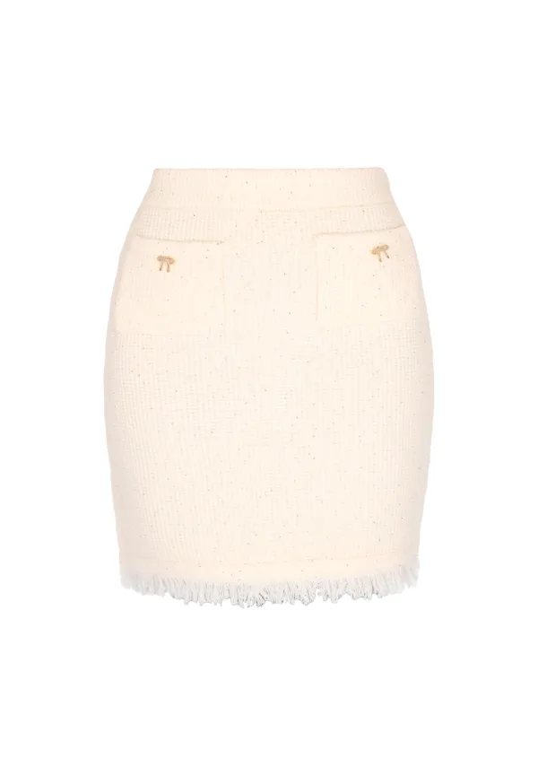 Design: Opgezette zakken; Type sluiting: Slip; Materiaal: Knitwear; Motief: Effen; Rokvorm: Minirok; Details: Franjes, Pailletten; Extra's: Met textuur; Lengte: Kort/mini; Pasvorm: Normale pasvorm