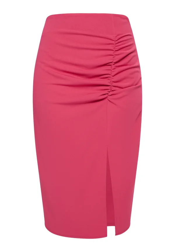 Materiaal: Jersey; Motief: Effen; Rokvorm: Kokerrok; Details: Gedrapeerd; Lengte: 3/4 lengte; Pasvorm: Aansluitende pasvorm