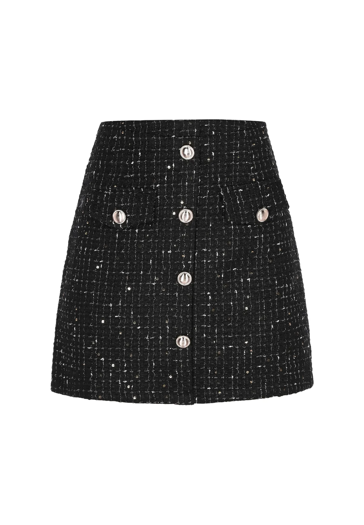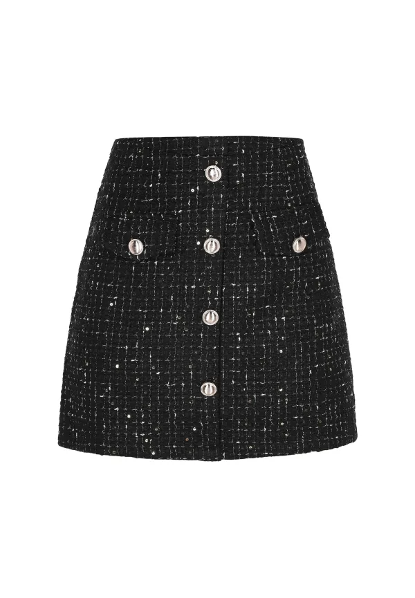Design: Placket, Rechte zoom, Opgezette zakken; Type sluiting: Ritssluiting; Materiaal: Bouclé; Motief: Effen; Rokvorm: A-lijn rok; Extra's: Glitterend, Niet-wegglijdende stof; Lengte: Kort/mini; Pasvorm: Normale pasvorm