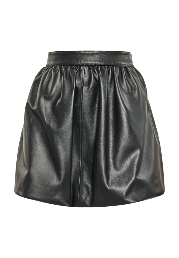 Dompel jezelf onder in de charme van deze leren minirok met hoge taille, een symbool van vrouwelijke kracht en een op rocker geïnspireerde stijl. De brede elastische tailleband zorgt voor een perfecte pasvorm, terwijl de gekreukelde stof zorgt voor een volumineus silhouet dat party chic uitstraalt. Met zijn glinsterende, reflecterende textuur is deze rok ontworpen voor casual of semi-formele gelegenheden waarbij je je mode-keuzes wilt uiten. Dit product maakt deel uit van de Shiny Croco Leather Collection Rock
