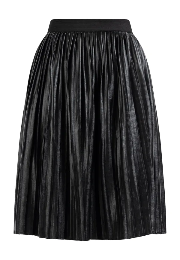 Design: Elastische taille/zoom; Materiaal: Imitatieleder; Motief: Effen; Rokvorm: Plooirok; Details: Plooien; Extra's: Op staal naden; Lengte: Knielengte; Pasvorm: Normale pasvorm