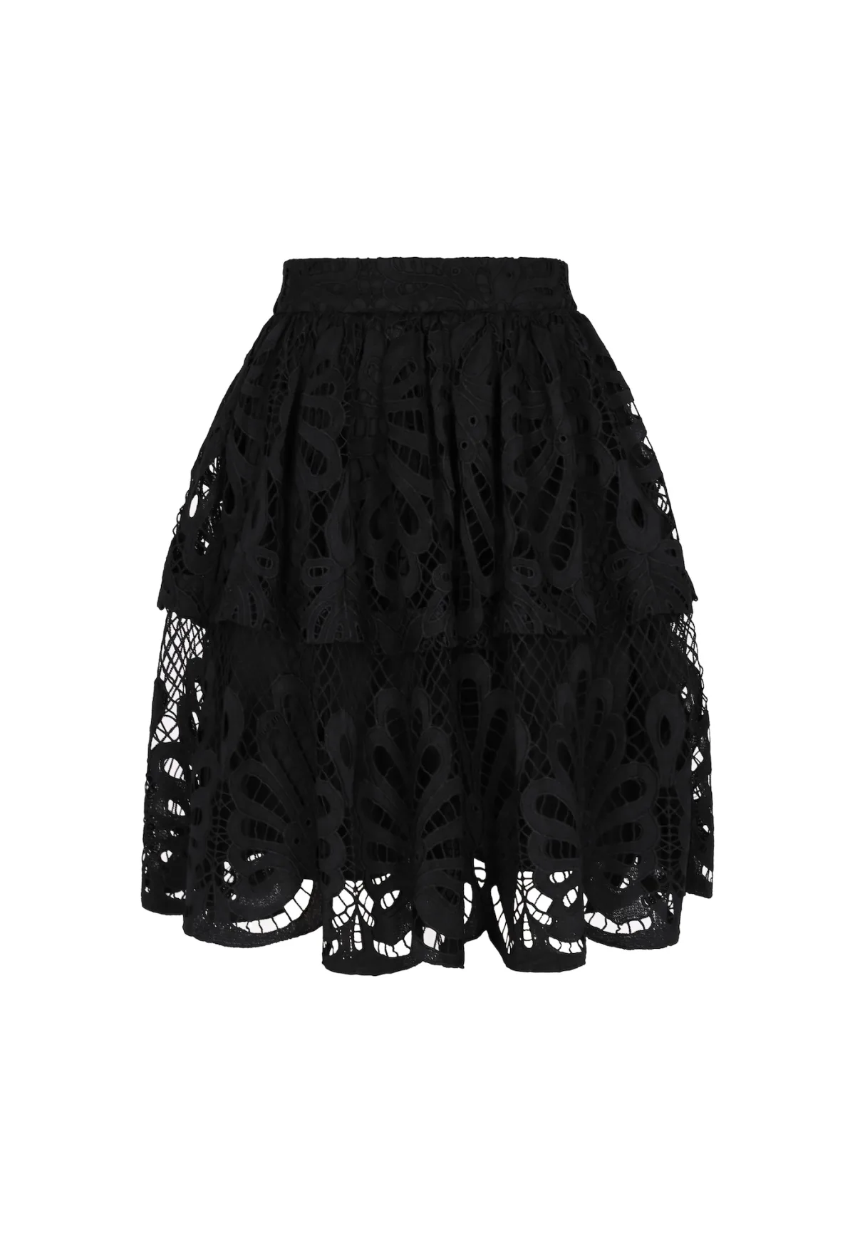 Design: Gevoerde zoom/rand; Materiaal: Viscose; Motief: Effen; Rokvorm: Volantrok; Details: Kant, Volant, Plooien, Gedrapeerd, Mesh; Extra’s: Op staal naden; Lengte: Knielengte; Pasvorm: Normale pasvorm
