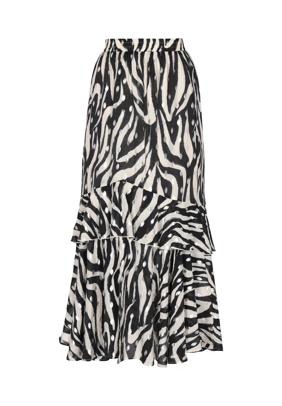 Omarm de wilde kant met deze rok met een opvallende dierenprint. De gelaagde snit met speelse ruches creëert een volumineus silhouet, terwijl de elastische tailleband zorgt voor comfort en gemakkelijk aankleden. De lichte, vloeiende stof zorgt voor sierlijke bewegingen en mooie draperingen tijdens het dragen. De ongelijke zoom voegt een dynamisch tintje toe aan dit zwierige kledingstuk, perfect voor degenen die graag opvallen met hun stijl. Rock