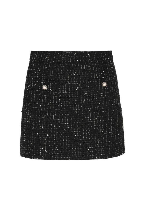 Design: Opgezette zakken; Type sluiting: Ritssluiting; Materiaal: Bouclé; Rokvorm: A-lijn rok; Details: Pailletten; Extra's: Glitterend, All-over patroon; Lengte: Kort/mini; Pasvorm: Normale pasvorm