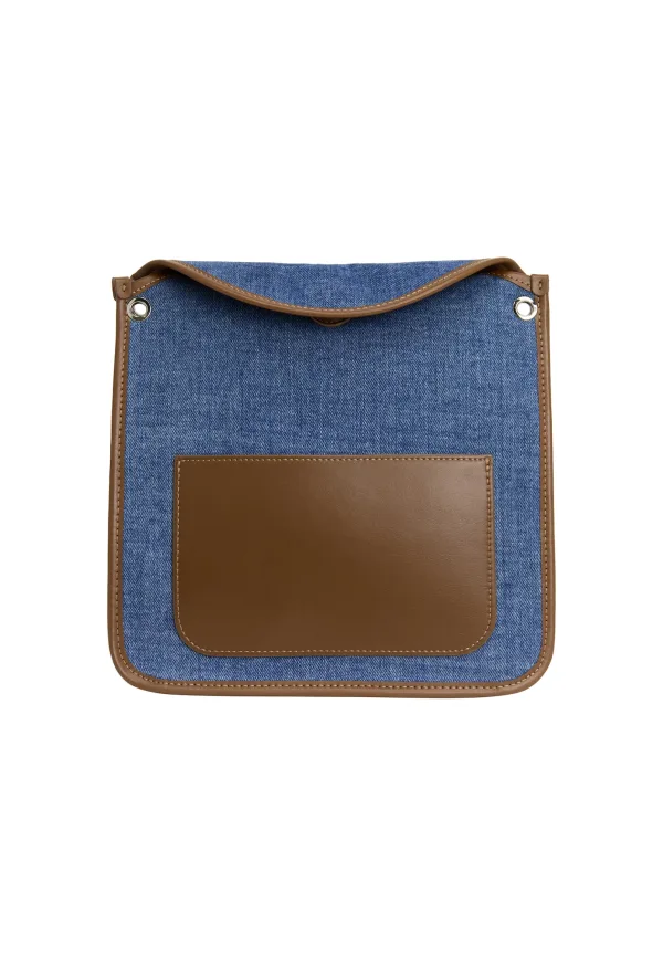 faina Schoudertas blauw denim / donkerbruin Prijzen