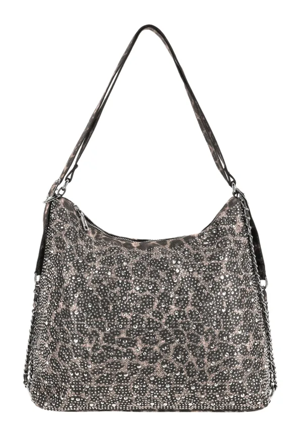 Design: Ruim hoofdvak; Type sluiting: Ritssluiting; Motief: Dierenprint; Extra's: Met halfedelstenen; Maat: Klein; Hengsellengte: Korte schouderriemen