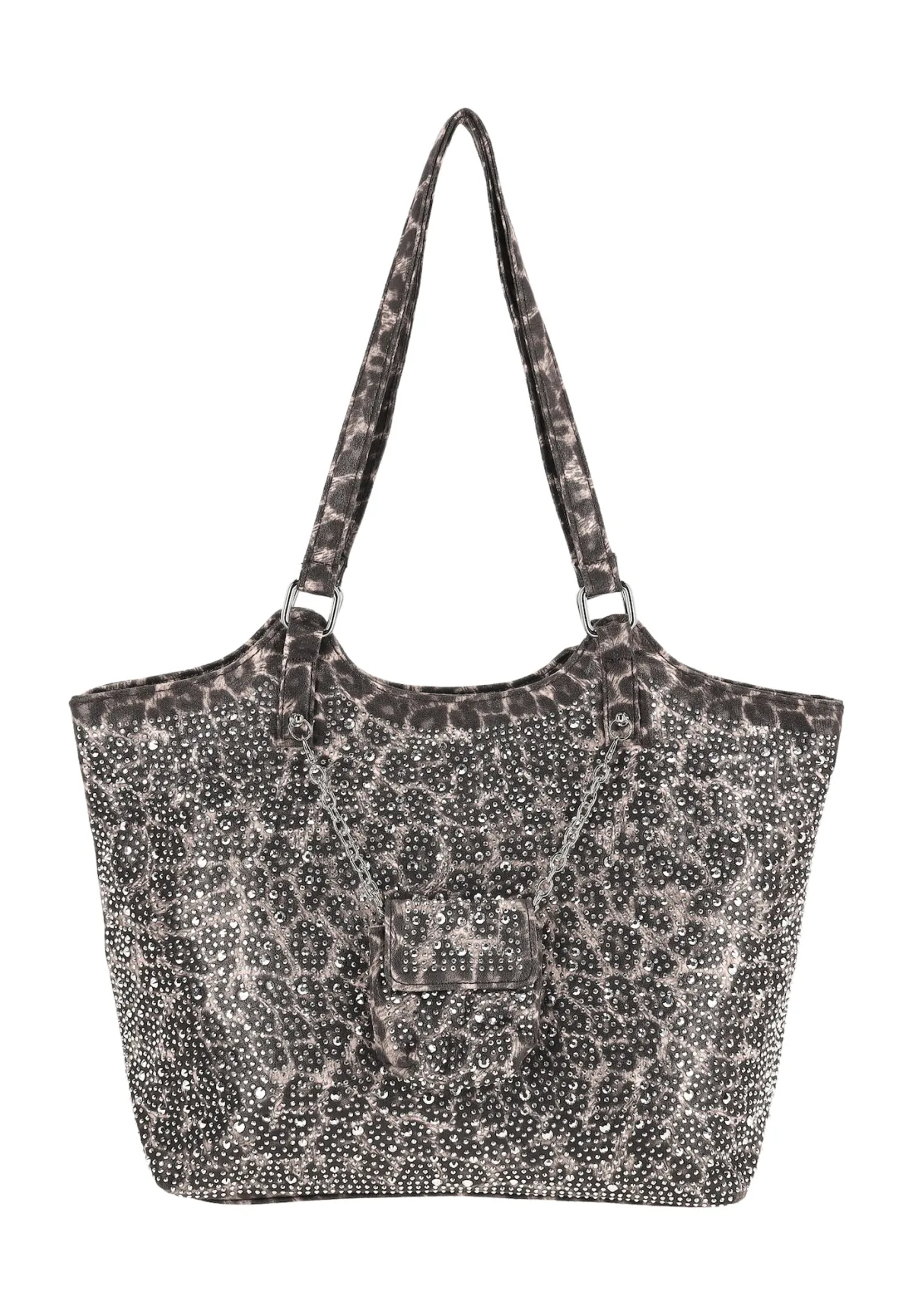 Design: Ruim hoofdvak, Ritsvak binnen; Type sluiting: Ritssluiting; Motief: Dierenprint; Materiaal: Textiel; Extra's: Met halfedelstenen, Glinsterend, All-over patroon; Maat: Gemiddeld; Hengsellengte: Korte schouderriemen