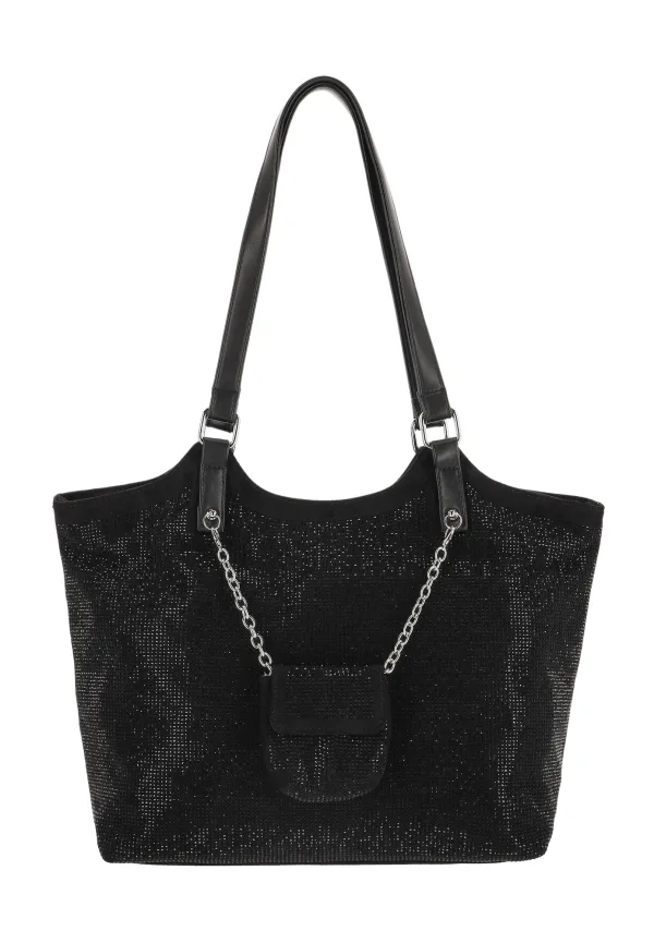 Design: Ruim hoofdvak, Ritsvak binnen; Type sluiting: Ritssluiting; Motief: Effen; Materiaal: Textiel; Extra's: Glitterend, Stevige stof; Maat: Klein; Hengsellengte: Korte schouderriemen