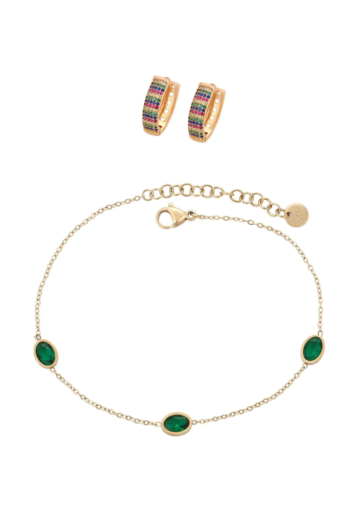 Specificaties: faina Sieraden set blauw / goud / smaragd / pink