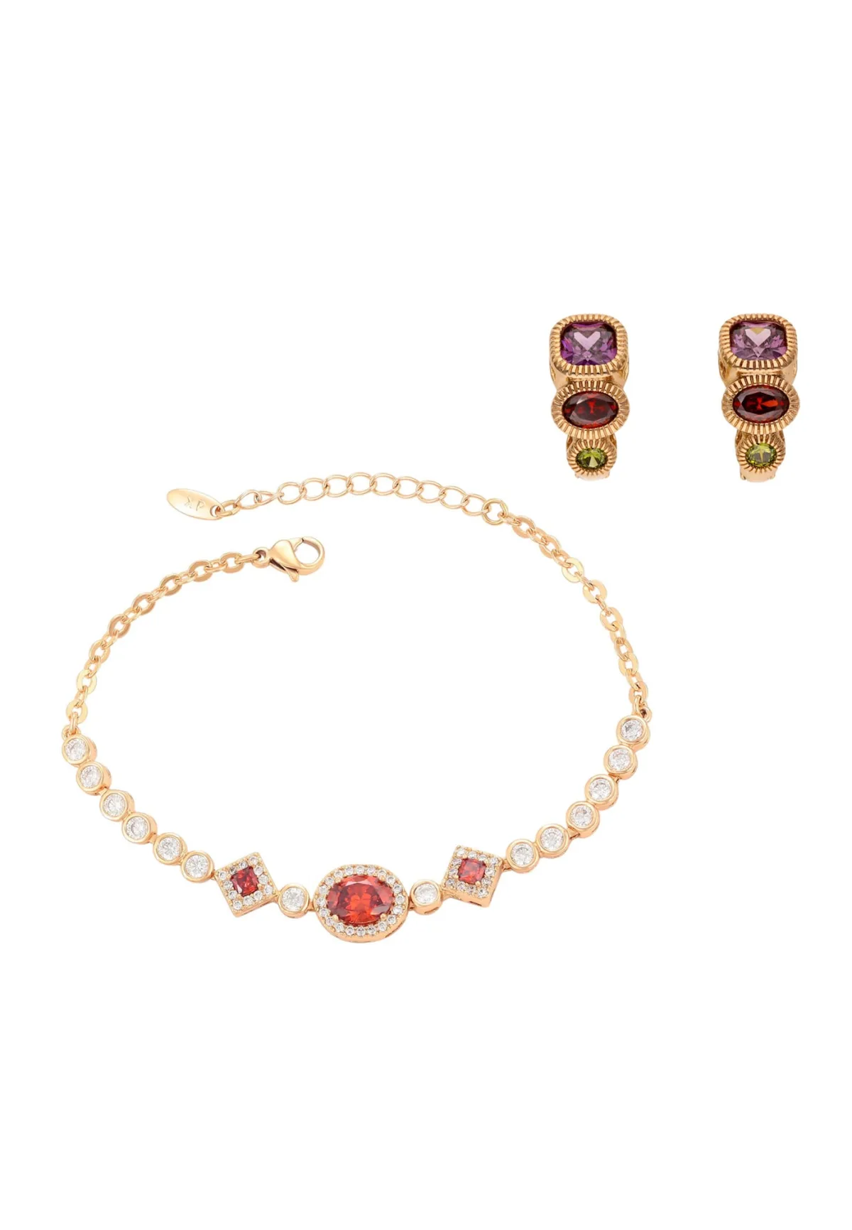 Specificaties: faina Sieraden set goud / lichtgroen / lila / rood