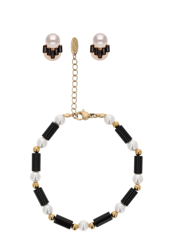 Specificaties: faina Sieraden set goud / zwart / parelwit