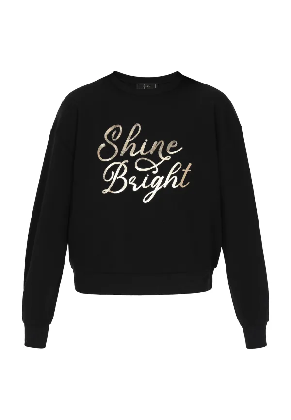 Design: Geribbelde kraag, Overcut schouder; Materiaal: Sweatstof; Halstype: Ronde hals; Motief: Tekst print; Extra's: Glitterend, Voelt zacht aan; Pasvorm: Losse pasvorm; Armlengte: Lange mouw; Lengte: Normale lengte