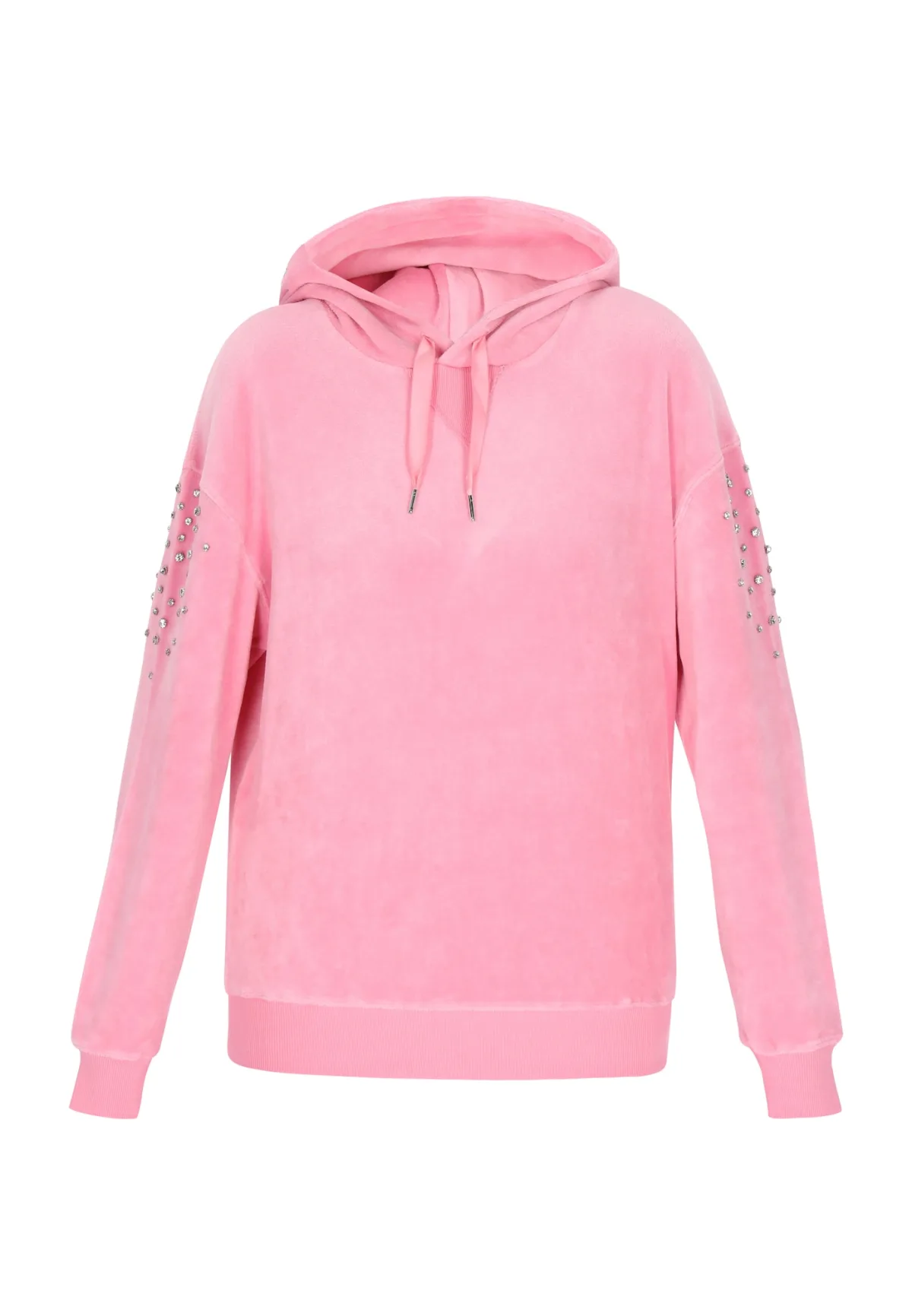 Design: Capuchon met trekkoord; Materiaal: Fluweel/Nicky Velours; Halstype: Capuchon; Motief: Effen; Details: Sierstenen; Extra's: Voelt zacht aan; Pasvorm: Losse pasvorm; Armlengte: Lange mouw; Lengte: Normale lengte