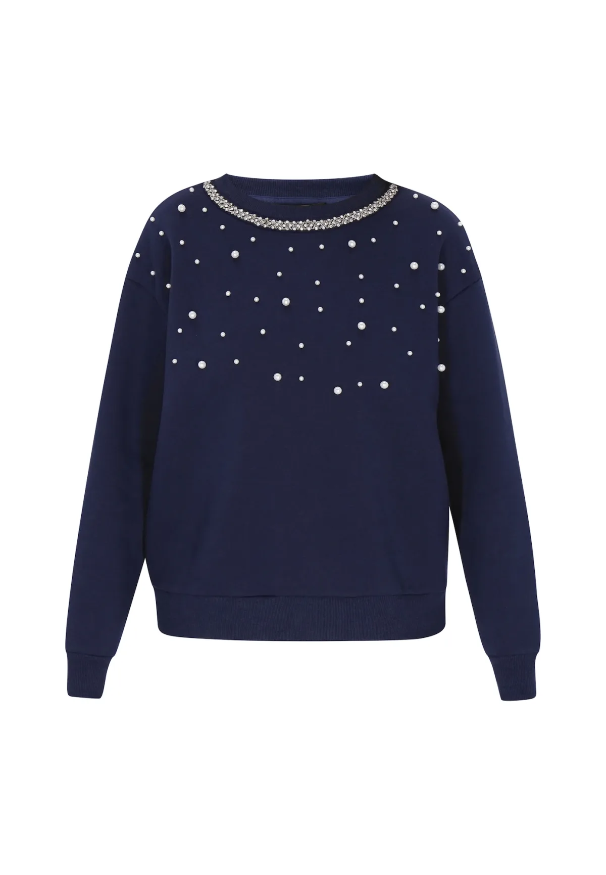 Design: Geribbelde kraag, Geribd ceintuurtje, Overcut schouder; Type sluiting: Slip; Materiaal: Sweatstof; Halstype: Ronde hals; Motief: Effen; Details: Sierstenen, Parels; Extra's: Voelt zacht aan; Pasvorm: Losse pasvorm; Armlengte: Lange mouw; Lengte: Normale lengte