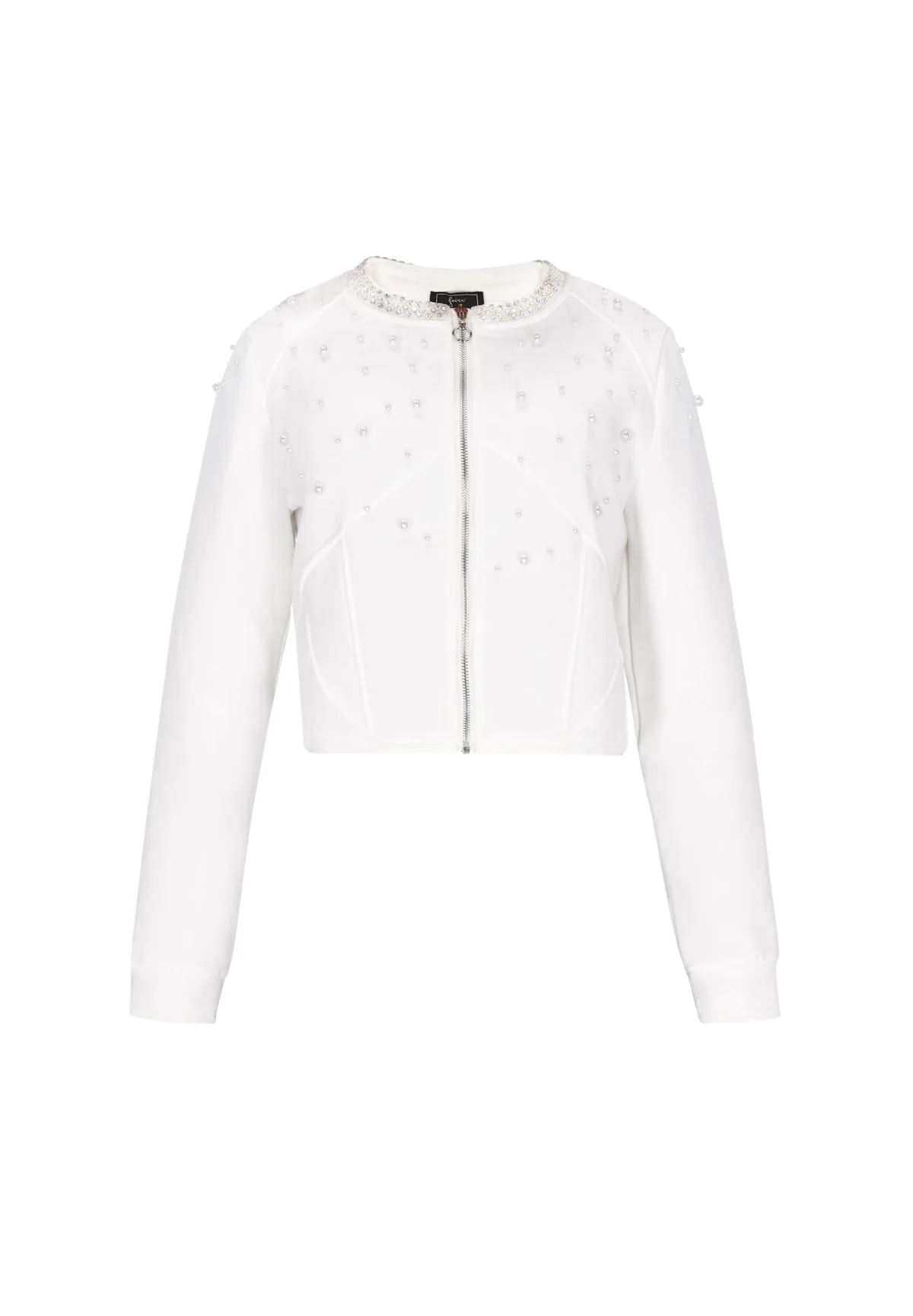 Design: Geribd ceintuurtje; Type sluiting: Ritssluiting; Materiaal: Sweatstof; Halstype: Ronde hals; Motief: Effen; Details: Sierstenen, Parels; Extra's: Huidvriendelijk materiaal; Pasvorm: Normale pasvorm; Armlengte: Lange mouw; Lengte: Korte pasvorm