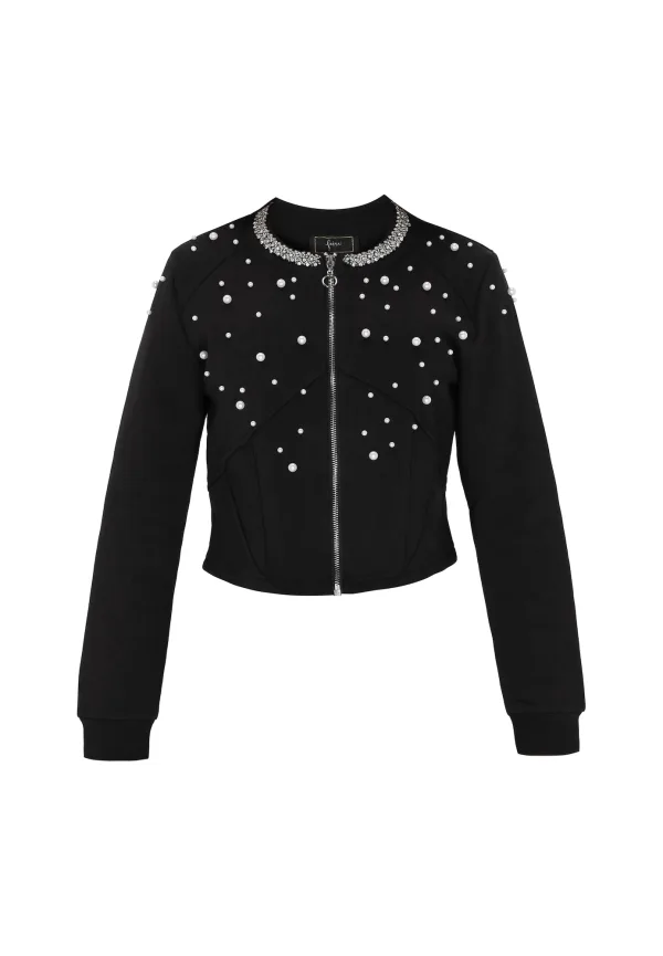 Design: Geribd ceintuurtje, Ronde zoom; Type sluiting: Ritssluiting; Materiaal: Sweatstof; Halstype: Ronde hals; Motief: Effen; Details: Sierstenen, Parels; Extra's: Glitterend, Voelt zacht aan; Pasvorm: Normale pasvorm; Armlengte: Lange mouw; Lengte: Korte pasvorm