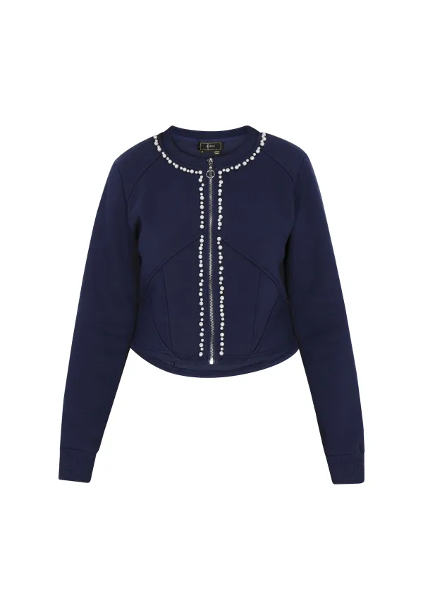 faina Sweatvest donkerblauw / parelwit