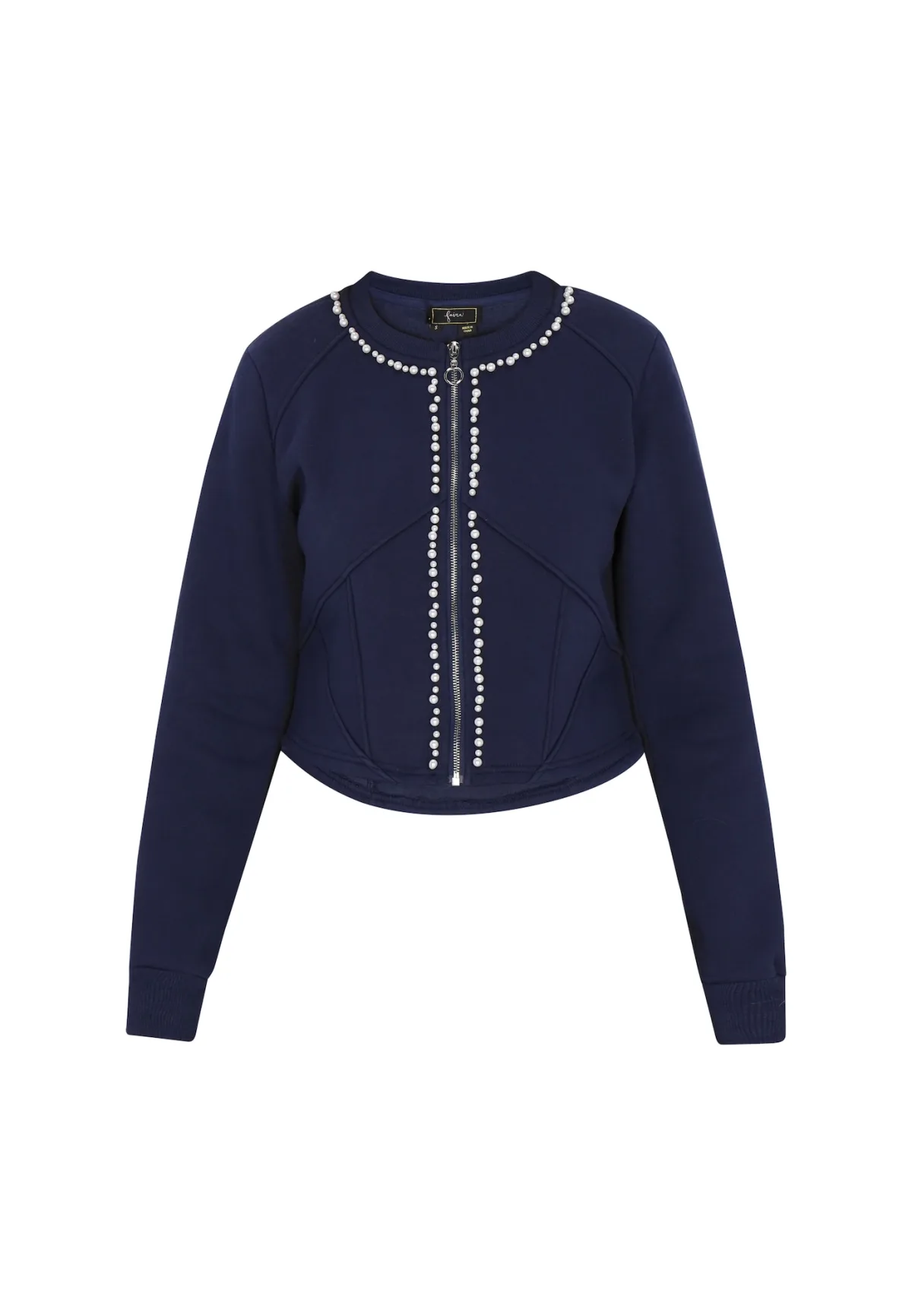 Design: Gevoerde zoom/rand, Geribbelde kraag, Geribd ceintuurtje, Nektape; Type sluiting: Ritssluiting; Materiaal: Sweatstof; Halstype: Ronde hals; Motief: Effen; Details: Parels; Extra's: Applicaties, Op staal naden, Voelt zacht aan; Pasvorm: Normale pasvorm; Armlengte: Lange mouw; Lengte: Korte pasvorm