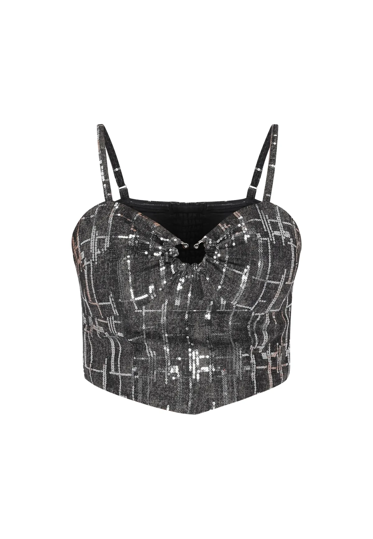 Materiaal: Denim; Soort bandjes: Spaghettibandjes; Details: Pailletten, Korset; Extra's: Glitterend, Verstelbare bandjes, Gewassen effect; Pasvorm: Normale pasvorm; Armlengte: Mouwloos; Lengte: Korte pasvorm