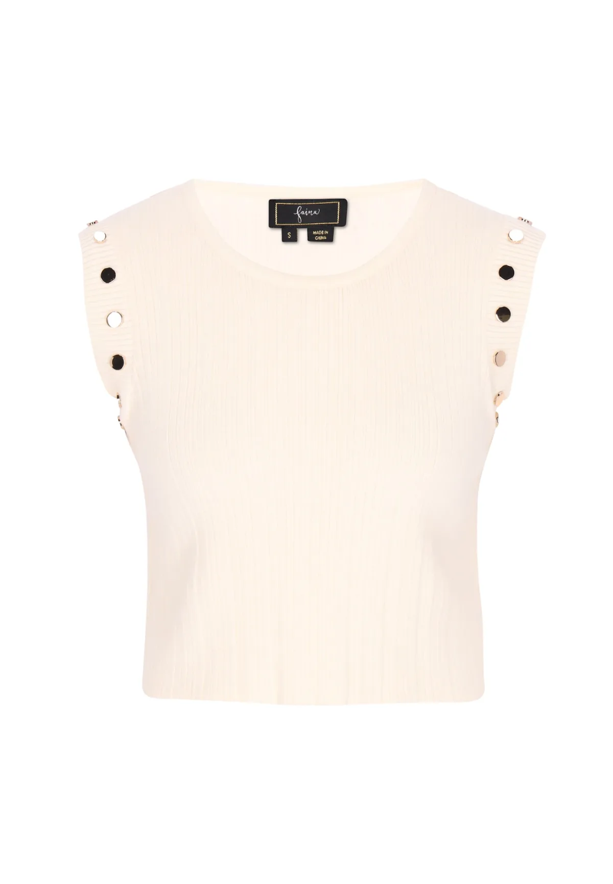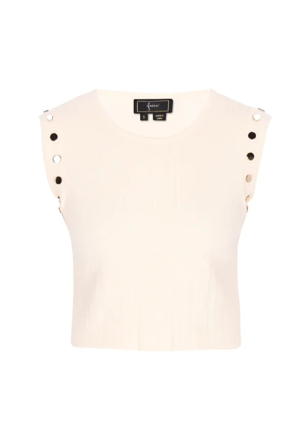 Design: Geribbelde kraag, Rechte zoom, Geribbeld gebreid; Materiaal: Jersey; Halstype: Ronde hals; Motief: Effen; Extra's: Applicaties, Op staal naden, Met textuur, Voelt zacht aan; Pasvorm: Normale pasvorm; Armlengte: Mouwloos; Lengte: Normale lengte