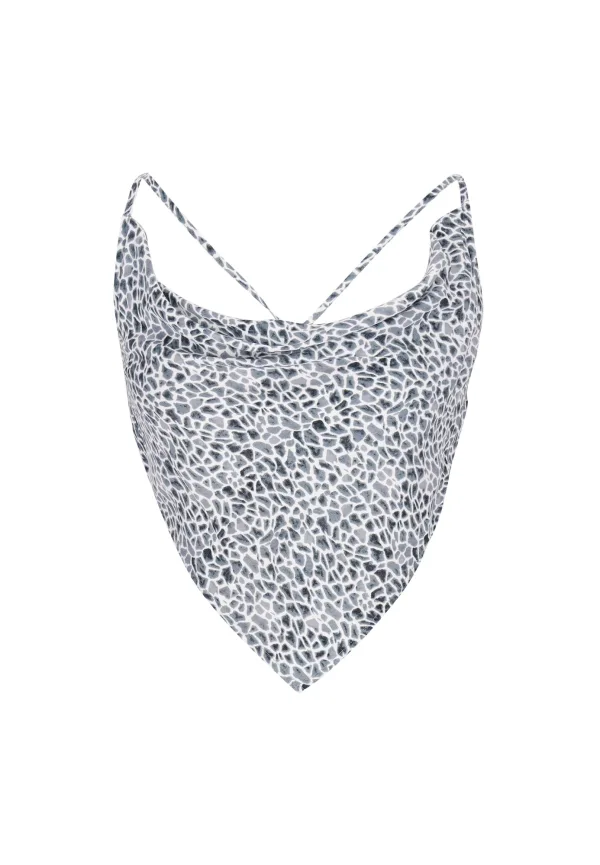 Design: Gevoerde zoom/rand; Materiaal: Viscose; Halstype: Watervalhals; Motief: Dierenprint; Soort bandjes: Spaghettibandjes; Details: Plooien, Backless; Extra's: Verstelbare bandjes, All-over patroon; Pasvorm: Slanke pasvorm; Armlengte: Mouwloos; Lengte: Korte pasvorm