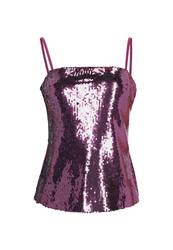 Design: Rechte zoom, Getailleerd model; Halstype: Carréhals; Motief: Effen; Soort bandjes: Spaghettibandjes; Details: Pailletten; Extra's: Glanzend, Verstelbare bandjes; Pasvorm: Slanke pasvorm; Armlengte: Mouwloos; Lengte: Normale lengte