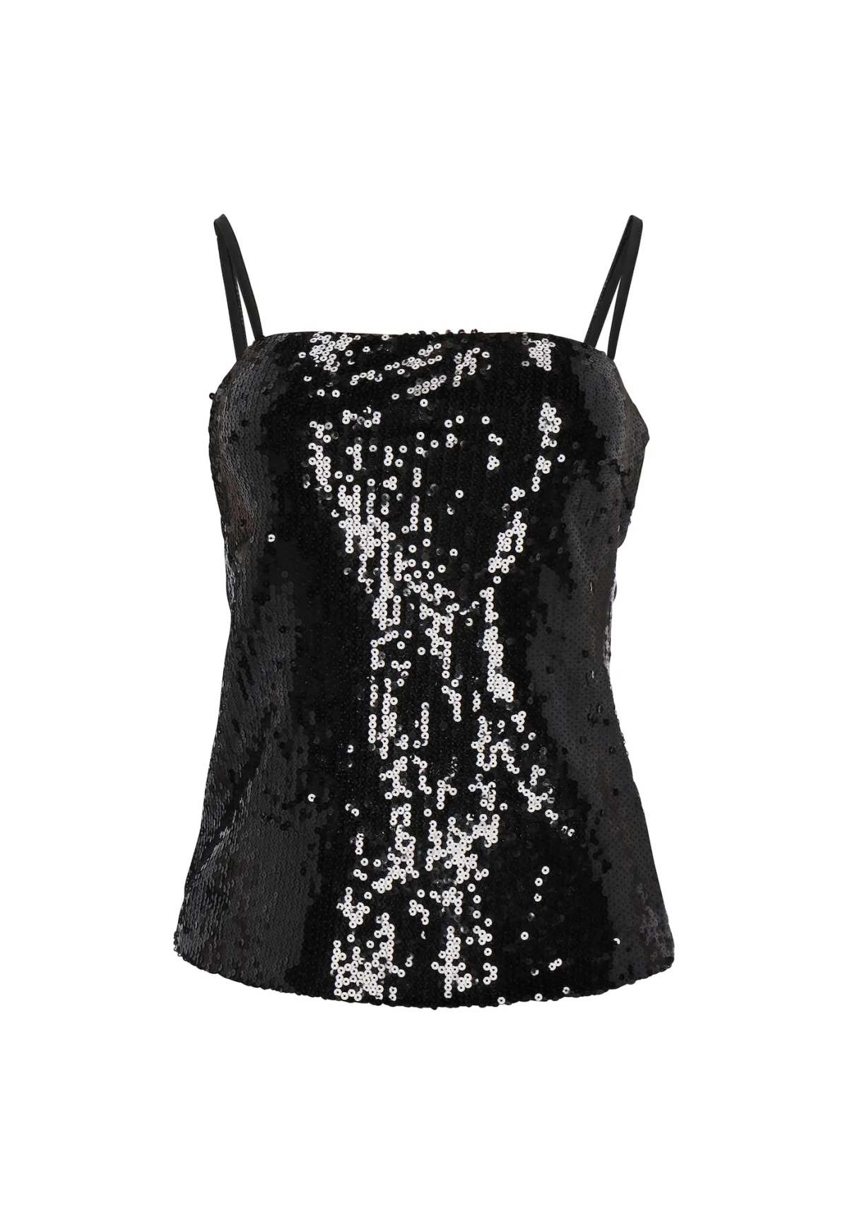 Design: Rechte zoom, Uitgesneden rug; Halstype: Carréhals; Motief: Effen; Soort bandjes: Spaghettibandjes; Details: Pailletten; Extra's: Glitterend, Verstelbare bandjes; Pasvorm: Slanke pasvorm; Armlengte: Mouwloos; Lengte: Normale lengte