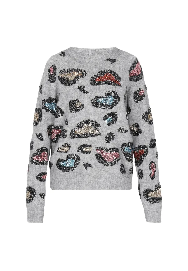 Design: Geribbelde kraag, Geribd ceintuurtje; Type sluiting: Slip; Materiaal: Knitwear; Halstype: Ronde hals; Details: Pailletten; Extra's: All-over patroon, Voelt zacht aan; Pasvorm: Normale pasvorm; Armlengte: Lange mouw; Lengte: Normale lengte