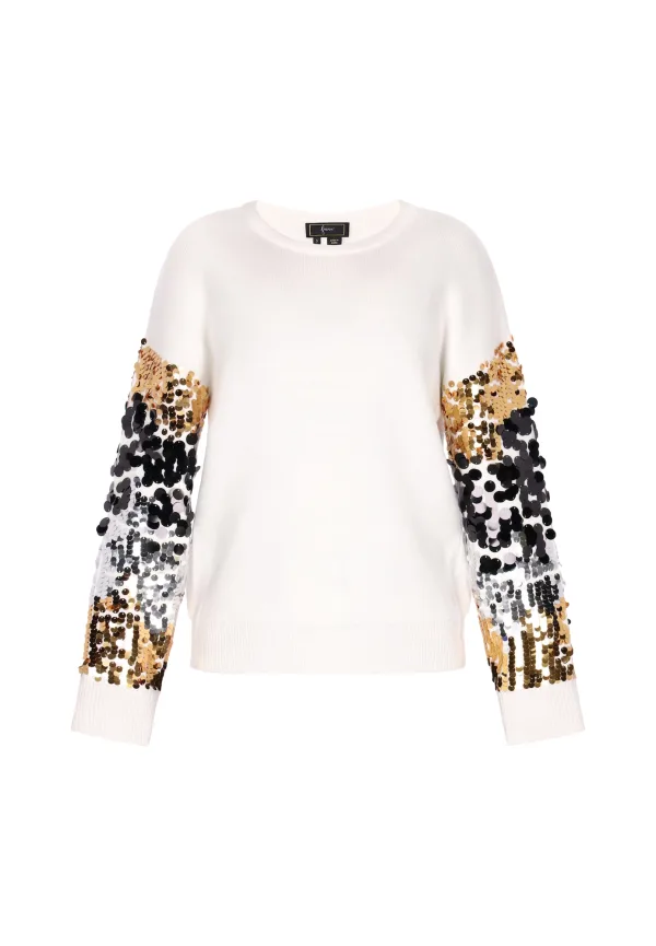 Design: Overcut schouder; Materiaal: Knitwear; Halstype: Ronde hals; Details: Pailletten; Extra's: Glanzend; Pasvorm: Losse pasvorm; Armlengte: Lange mouw; Lengte: Normale lengte