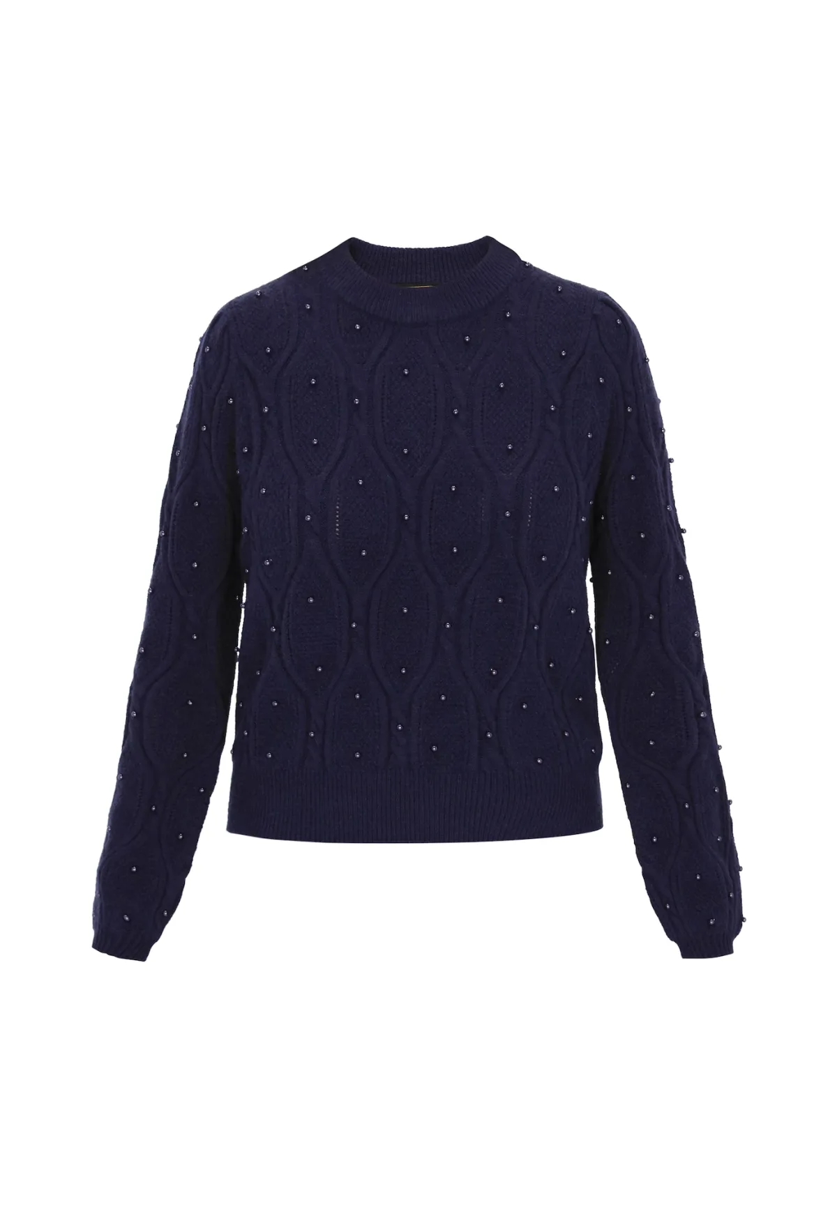 Design: Geribbelde kraag, Geribd ceintuurtje; Type sluiting: Slip; Materiaal: Knitwear; Halstype: Ronde hals; Motief: Effen; Details: Parels; Extra's: Met textuur; Pasvorm: Normale pasvorm; Armlengte: Lange mouw; Lengte: Normale lengte