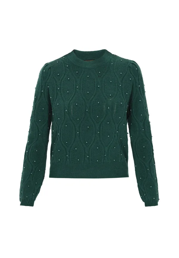 Design: Geribd ceintuurtje; Type sluiting: Slip; Materiaal: Knitwear; Halstype: Ronde hals; Motief: Effen; Details: Parels; Extra's: Voelt zacht aan; Pasvorm: Normale pasvorm; Armlengte: Lange mouw; Lengte: Normale lengte