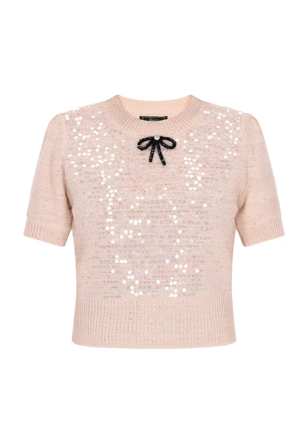 Design: Pofmouwen; Materiaal: Knitwear; Halstype: Ronde hals; Details: Pailletten, Sierstenen; Extra's: Glitterend, Applicaties, Fully fashioned; Pasvorm: Normale pasvorm; Armlengte: Kwartmouw; Lengte: Normale lengte