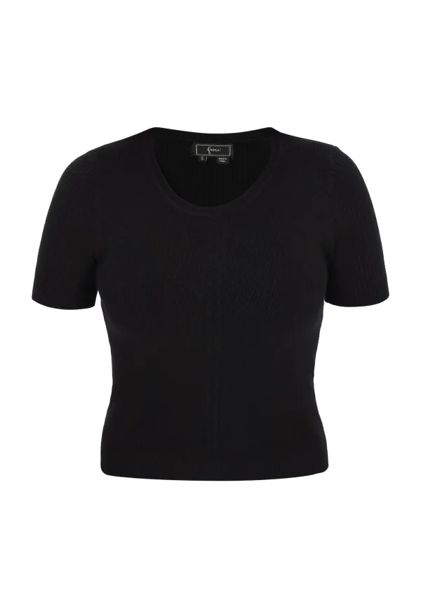 Design: Rechte zoom; Materiaal: Knitwear; Halstype: Ronde hals; Motief: Effen; Extra's: Voelt zacht aan; Pasvorm: Slanke pasvorm; Armlengte: Kwartmouw; Lengte: Korte pasvorm