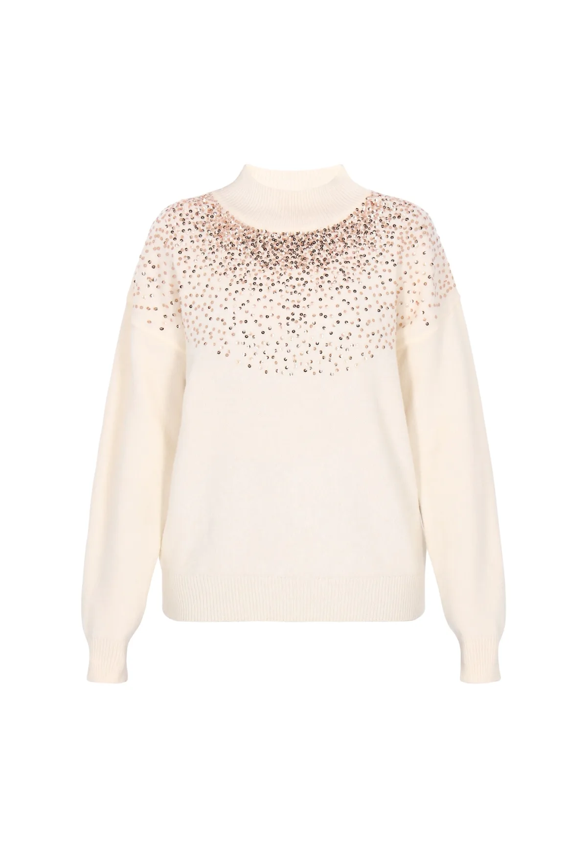Design: Geribd ceintuurtje; Type sluiting: Slip; Materiaal: Knitwear; Halstype: Opstaande kraag; Details: Pailletten; Extra's: Applicaties, Met textuur; Pasvorm: Losse pasvorm; Armlengte: Lange mouw; Lengte: Normale lengte