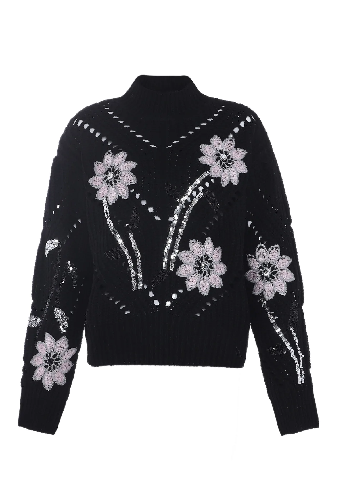 Design: Geribd ceintuurtje; Materiaal: Knitwear; Halstype: Opstaande kraag; Motief: Bloemenprint; Details: Borduursels, Mesh; Extra's: Voelt zacht aan; Pasvorm: Normale pasvorm; Armlengte: Lange mouw; Lengte: Normale lengte