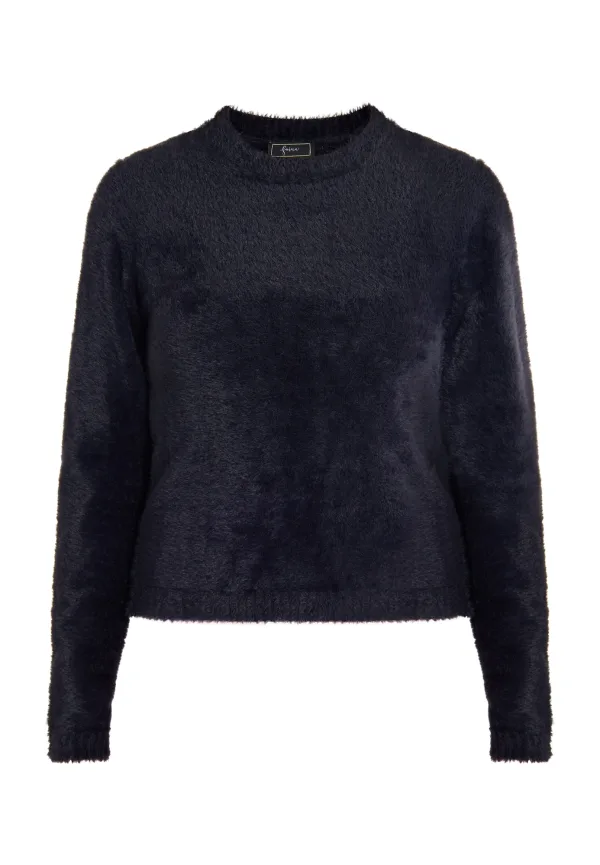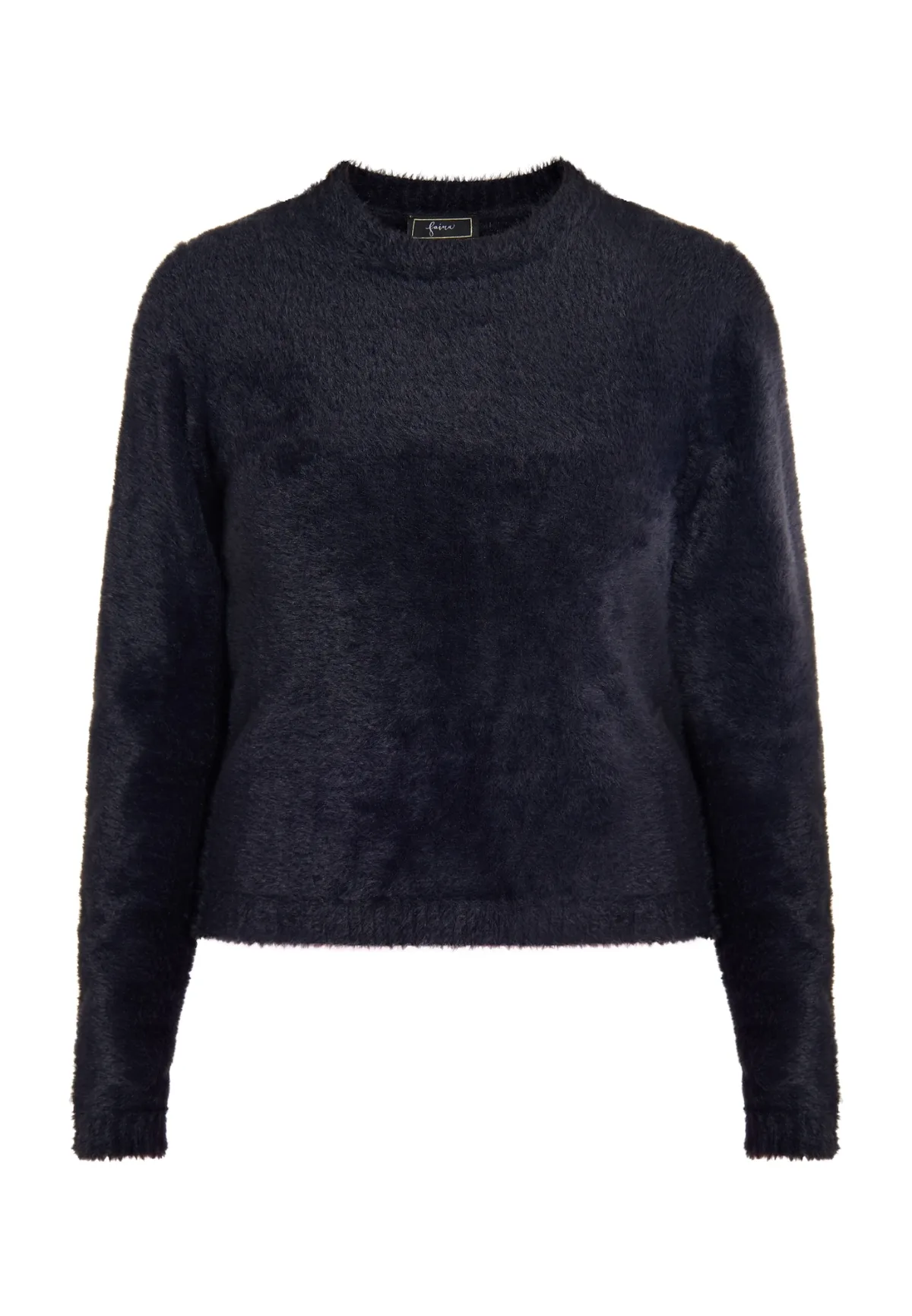 De trui van faina is gebreid van een harige, pluizige garenmix en heeft een elegant beeld. Het smalle silhouet eindigt in fijne ribgebreide manchetten en past daardoor perfect in je herfst-wintergarderobe. Gebreide trui