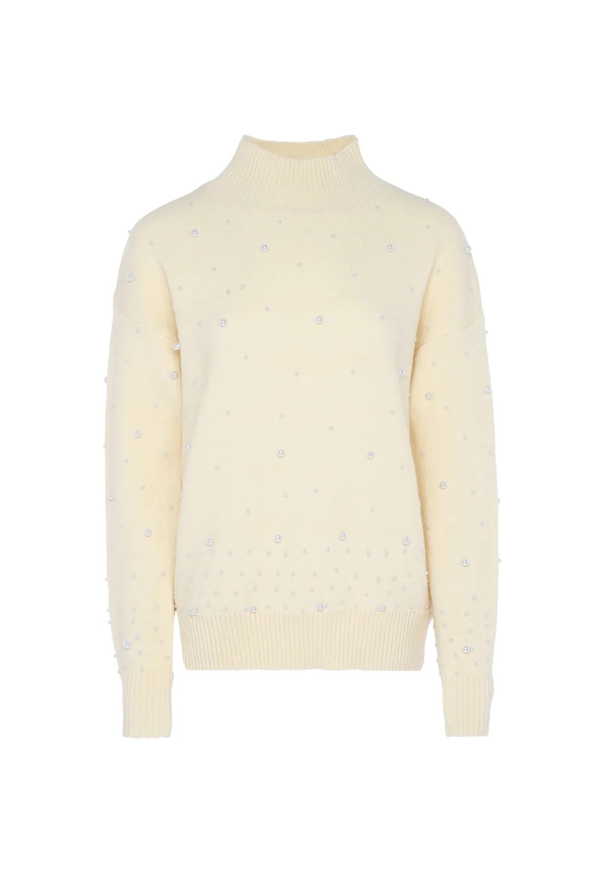 Design: Rechte zoom; Halstype: Opstaande kraag; Motief: Effen; Details: Parels; Extra's: Voelt zacht aan; Pasvorm: Losse pasvorm; Armlengte: Lange mouw; Lengte: Normale lengte
