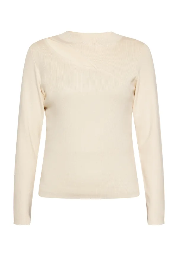 Design: Geribbelde kraag; Materiaal: Knitwear; Halstype: Ronde hals; Motief: Effen; Details: Cut-outs; Extra's: Met textuur; Pasvorm: Slanke pasvorm; Armlengte: Lange mouw; Lengte: Normale lengte