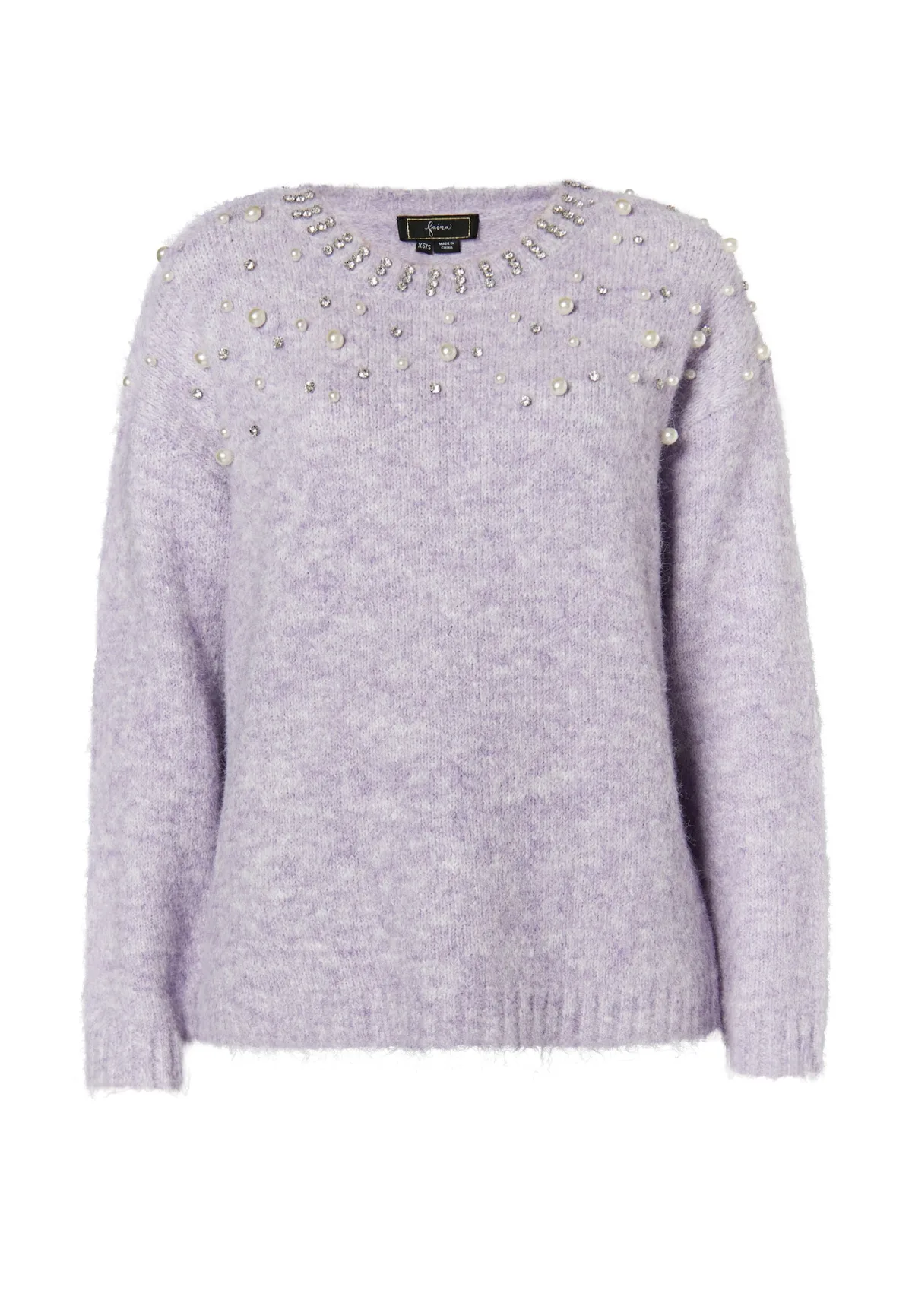 Halstype: Ronde hals; Motief: Mélange; Details: Sierstenen, Parels; Pasvorm: Normale pasvorm; Armlengte: Lange mouw; Lengte: Normale lengte