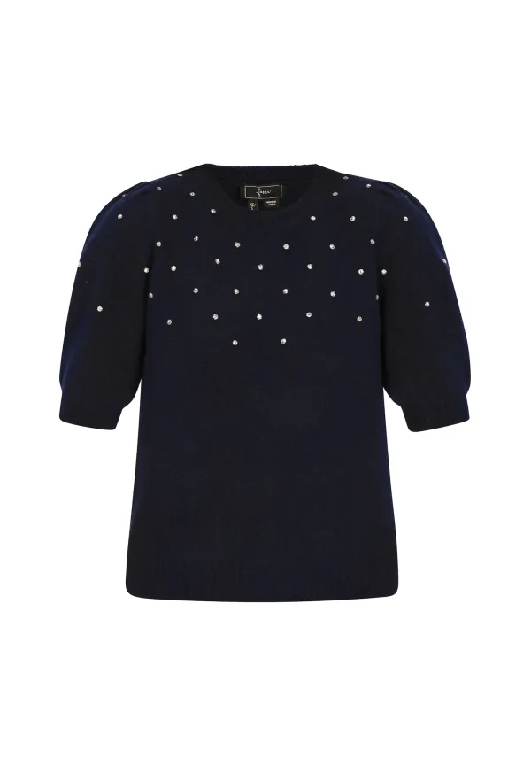 Design: Pofmouwen; Type sluiting: Slip; Materiaal: Knitwear; Halstype: Ronde hals; Motief: Effen; Details: Sierstenen; Extra's: Voelt zacht aan; Pasvorm: Normale pasvorm; Armlengte: Halve mouw; Lengte: Normale lengte