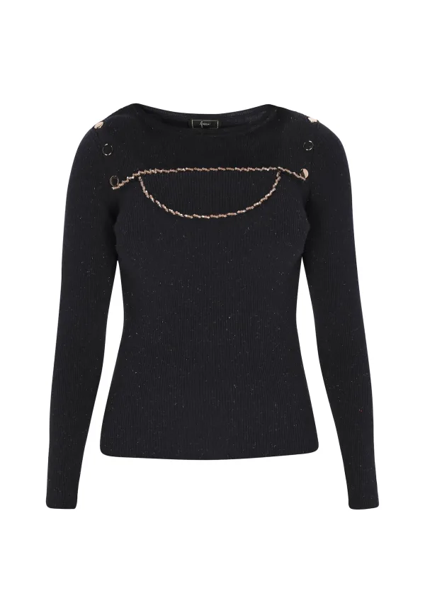 Design: Geribbeld gebreid, Ingelegde kraag, Siernaad; Type sluiting: Slip; Materiaal: Knitwear; Halstype: Ronde hals; Motief: Effen; Details: Cut-outs; Extra's: Glinsterend; Pasvorm: Aansluitende pasvorm; Armlengte: Lange mouw; Lengte: Normale lengte