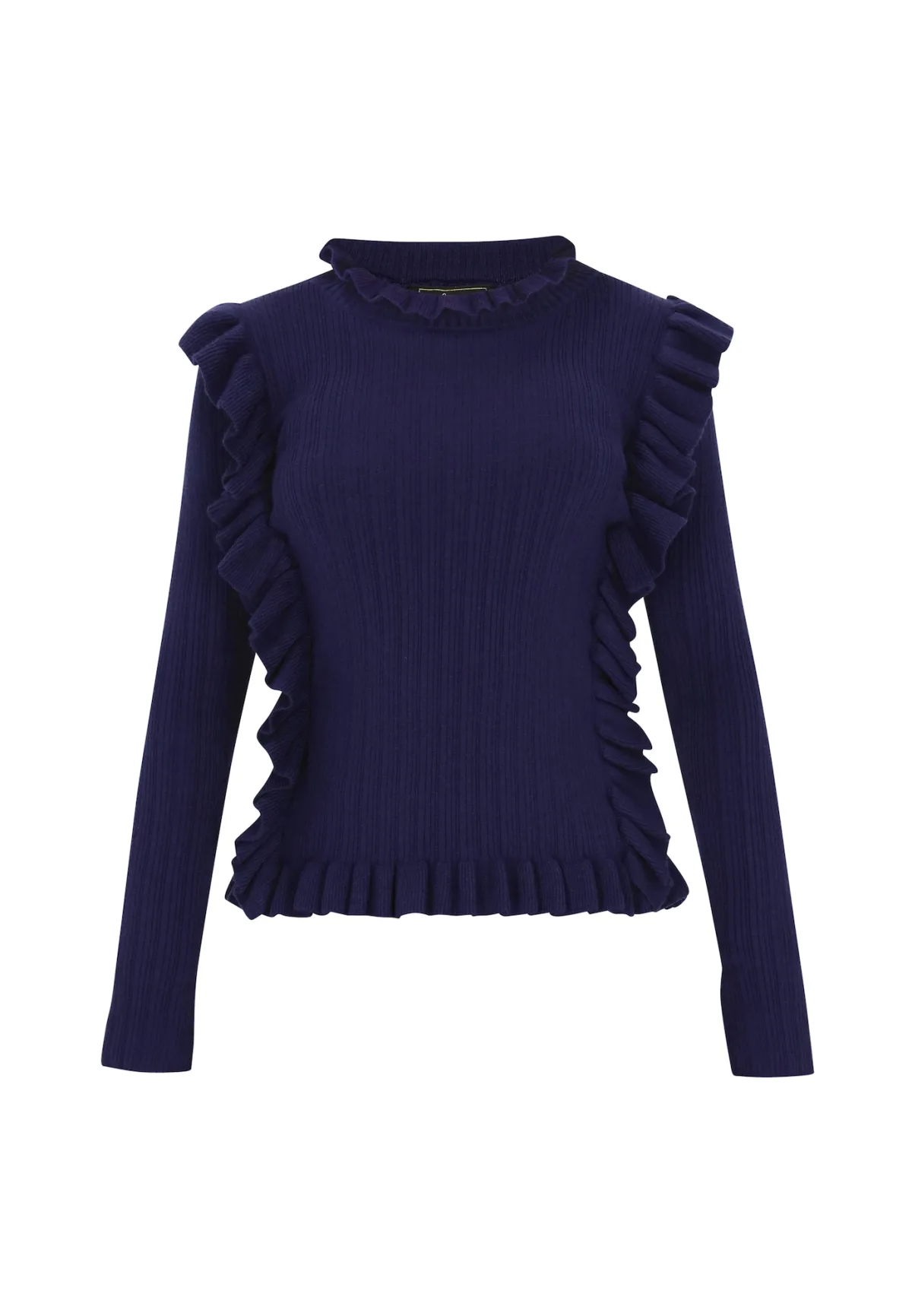 Design: Geribbeld gebreid; Type sluiting: Slip; Materiaal: Knitwear; Halstype: Ronde hals; Motief: Effen; Details: Ruches; Extra's: Met textuur; Pasvorm: Slanke pasvorm; Armlengte: Lange mouw; Lengte: Normale lengte