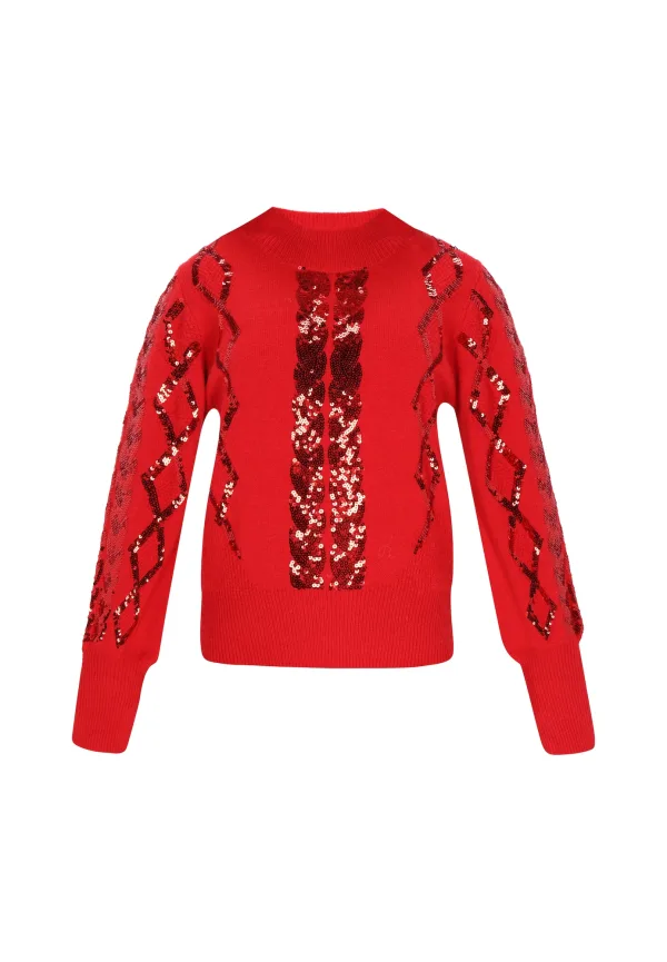Design: Geribbelde kraag, Pofmouwen, Geribd ceintuurtje, Staande kraag; Type sluiting: Slip; Materiaal: Knitwear; Halstype: Opstaande kraag; Details: Pailletten; Extra's: Glitterend, Voelt zacht aan; Pasvorm: Normale pasvorm; Armlengte: Lange mouw; Lengte: Normale lengte