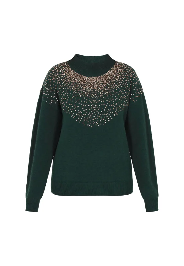 Design: Geribbelde kraag; Type sluiting: Slip; Materiaal: Knitwear; Halstype: Opstaande kraag; Motief: Effen; Details: Pailletten; Extra's: Voelt zacht aan; Pasvorm: Losse pasvorm; Armlengte: Lange mouw; Lengte: Normale lengte