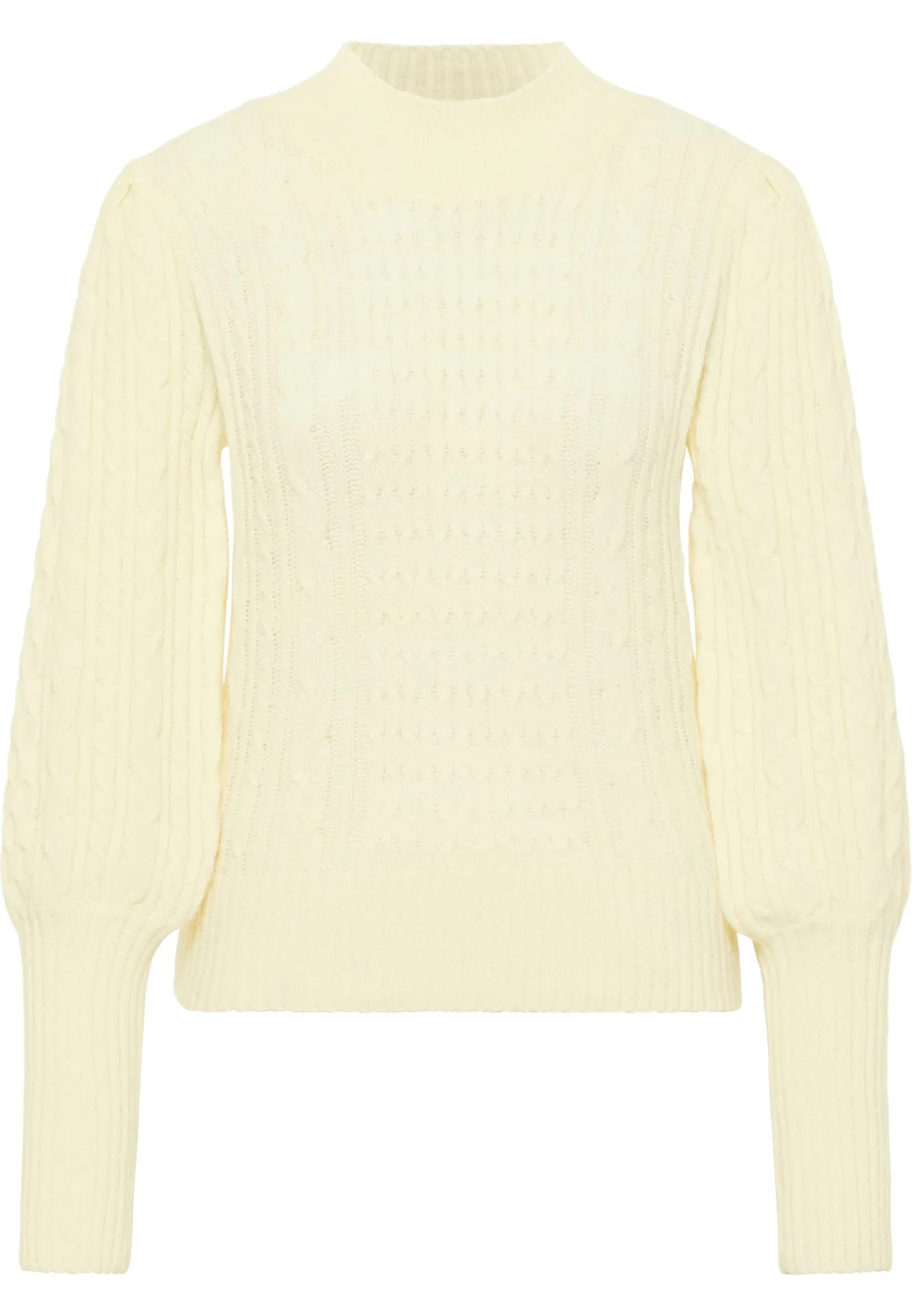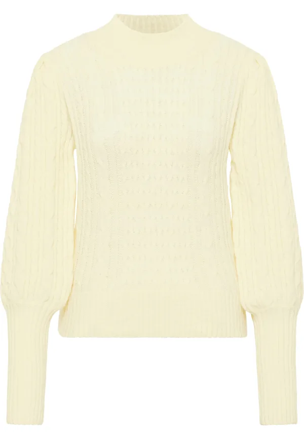 Deze gebreide trui van faina wordt gekenmerkt door zijn verschillende breipatronen en zijn vrouwelijke pofmouwen. De zachte garenmix heeft een aangename elasticiteit ten gunste van de lange mouwuiteinden en de opstaande kraag. De trui is variabel te combineren en zal snel een favoriet worden.